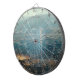 A dartboard featuring a photo of the smouldering remains of a wildfire.