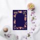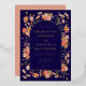 Elegant Wildflower arch navy blue and gold foil fall wedding invitation. This enchanting boho wedding invitation is a stunning blend of autumnal warmth and elegant charm. Featuring hand-painted, watercolor wildflowers in a delightful wreath design, the invitation showcases a rich colour palette of burnt orange, brown, yellow, green, terracotta, peach, coral, purple, and pink. The warm earthy tones combined with the rich navy blue background create a perfect harmony, making it an ideal choice for a fall wedding. The elegant gold foil accents bring a touch of sophistication, while the elegant script in gold foil adds a personal, classic flair to all your essential wedding details. Designed by the talented artist Catherine Sweetman, this unique invitation embodies the spirit of a cozy, intimate celebration in the heart of autumn. With easy-to-personalize templates, it offers a seamless way to convey your wedding information with style and artistry. The background in a rich navy blue adding a natural warmth, bringing the beautiful florals to life in a way that feels both fresh and timeless.