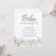 This charming floral invitation features wildflowers and butterflies. Its stylish script typography reads "Baby in Bloom."