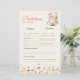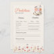 The "Wildflower Baby is Brewing" tea party prediction card is a fun and whimsical way for guests to share their guesses about the baby’s future! Featuring a delicate tea cup and soft beige and orange wildflowers, this card invites guests to predict details like the baby’s birth date, weight, or even future personality traits. It adds a personal, nature-inspired touch to your baby shower while creating lasting memories for everyone.