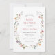 Baby shower invitation featuring a watercolor wreath of wildflowers and baby bottles. Customize with your information for the mom to be.