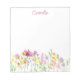 Pretty wildflower notepad to personalize with your name. This watercolor floral design has a border of wild flowers in pink orange and yellow, with hand lettered typography.