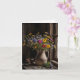 Colourful wildflower bouquet in an old jug by a farmhouse window for blank note card.