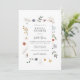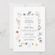 Modern boho wildflower bridal shower invitation with a floral watercolor frame with tiny wildflowers and a matching pattern on the reverse side.