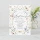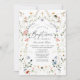This elegant girl's baptism invitation features a white background with a gold cross, wildflowers, butterflies, bees, and a ladybug. The reverse side features a light pink background with floral patterns. Personalize it for your needs. You can find matching products at my store.