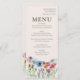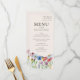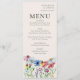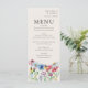 Wildflower wedding menu card with watercolor wild flowers. This rustic country botanical design has a pretty border of wildflowers including daisy poppy cornflower coneflower buttercup seedhead and clover. An elegant modern floral with bohemian garden theme. Please browse my store in the Wildflower Charm collection, for matching items.