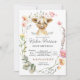 Invite your guest with our elegant and modern on the farm baby shower invitation features wildflower garland and watercolor sweet baby farm animals. Personalize with your baby shower details in simple layout and elegant handwritten style font.