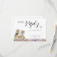Dinosaur-themed wedding RSVP reply enclosure card. Featuring a fun T-Rex bride and groom set in a vibrant prehistoric boho wildflower meadow, this card brings a unique and whimsical feel to your special day. The modern calligraphy-style typography is both fun and easy to personalize, making it simple to match your wedding style. Designed by the talented Catherine Sweetman, the watercolor art showcases a charming blend of summer florals and dino-inspired love. Perfect for your wedding reception or rehearsal dinner, this RSVP card is part of a complete wedding suite that includes everything you’ll need to make your wedding journey as memorable as your love story.