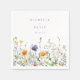 This design features a colourful border of watercolor wildflowers in shades of purple, gold, green, and blue.