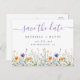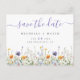 This design features a colourful border of watercolor wildflowers in shades of purple, gold, green, and blue.