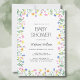 This pretty baby shower invitation is decorated with delicate hand drawn wildflowers in pastel shades.