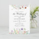 Surround your wedding details with a lush frame of hand-painted watercolor wildflowers. This invitation features vibrant, multi-coloured meadow blooms forming a soft rectangular border on a pure white background—creating a charming and immersive botanical look.