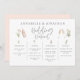 Watercolor wildflower pink girly wedding weekend itinerary. Watercolor champagne, wine and watercolor floral illustrations. Part of a matching collection.
