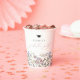 This wildflower paper cup features watercolor floral graphics, a blush, blue, lilac, yellow and green colour palette and a modern font. It is perfect for a whimsical wildflower themed graduation party and you can pair it with anything in the ELODIE collection for a cohesive look.