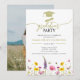 Celebrate your graduate’s milestone with this elegant and heartfelt Wildflower Graduation Invitation. It features a sophisticated layout with delicate floral accents, stylish typography, and a classic graduation cap illustration, creating the perfect balance of charm and celebration. The back of the card presents a stunning full-photo design on the front with vibrant wildflowers framing the bottom. This template beautifully captures the essence of new beginnings.