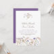 Pretty botanical wildflowers and soft grasses watercolor wedding invitation with QR code on white with pretty entwined harebells and heather flowers in soft muted blue and purple monogram and a selection of soft muted brown pink grasses and wildflower art along the bottom all hand painted watercolors. Delicate fall to winter feel botanical art invite with script text on white and a muted pink, brown, blue, mauve, purple colour palette. Personalize with your own initials, names, wedding date, time, venue, further details and QR code to your wedding website on the back. Other matching items are available. Original hand watercolor wildflower paintings and design by Sarah Trett for www.mylittleedenweddings.com