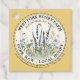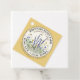 Wildflowers and honeybees with dashed border on yellow honey tag