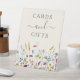 This sweet and simple party table sign is perfect for any nature themed party or shower. The design features the title "Cards and Gifts" in a charming script and serif font and the bottom of the signage is adorned with a beautiful field of hand painted watercolor wildflowers, adding a touch of color and whimsy. This sign is fully customizable with your own wording, making it a truly unique way to decorate your special day and is sure to impress your guests and set the tone for a beautiful and memorable celebration.
