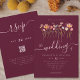Boho Fall Wildflower Meadow Wedding burgundy and blush pink Invitation with RSVP wedding website QR code, a stunning blend of autumnal charm and elegant sophistication. This watercolor design showcases hand-painted wildflowers in a vibrant garden meadow, with a rich palette of burnt orange, terracotta, brown, purple, yellow, coral, burnt umber, peach, and soft pink, capturing the warmth and beauty of the fall season on a rich romantic burgundy red wine background.