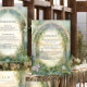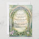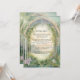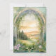 Coordinating Dinner Menu for the Design # MSP0111 Collection. 5" x 7" rectangle vertical design. Art Nouveau style mountain scene with tall pines, woodland wildflowers in a meadow and a delicate arched top frame with vining leaf foliage for a romantic marriage in the mountains. Magical, ethereal with a portal to everlasting love. The reverse side has the same scene in full colour. A complete set of products are available for purchase in the collection. MSP0111