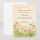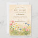 A soft watercolor meadow blooms across the bottom of this elegant design, featuring delicate daisies, blush cosmos, buttery yellow florals, and airy blue wildflowers. The warm ivory background and refined gold typography create a graceful balance between rustic charm and timeless sophistication. Inspired by sunlit fields and gentle summer breezes, this design feels romantic, fresh, and effortlessly classic. Perfect for a garden-inspired celebration with a refined, storybook touch.