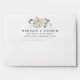 Personalize the white wedding envelopes by adding your names and return address to compliment your wedding or special event invitations. The inside of the envelopes features a pattern of watercolor flowers in shades of dusty blue, yellow, and cream. Designed to coordinate with our Wildflower Meadow wedding collection.