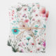 Wildflower meadow white, green, blue, brown, turq wrapping paper sheet