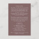 This beautifully minimal wedding information card is designed to give your guests directions and a schedule of the day in a clear, uncluttered format. With a delicate wildflower monogram, it’s perfect for fall and winter celebrations.Easy to personalize with your own details. Matching items are also available to complete your wedding suite.© Original hand painted watercolor art and design by Sarah Trett exclusively for www.mylittleedenweddings.com