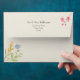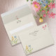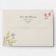 Bring fresh spring charm to your wedding stationery with this ivory wildflower envelope, designed with soft watercolor florals in yellow, blue, and pink tones. The outside features delicate corner florals and a customizable return address, while the inside flap includes a refined monogram accented with a tiny spring blossom.