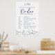 Dusty blue wildflower floral order of events wedding poster, wedding sign.