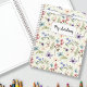 Pale yellow notebook* with a seamless pattern full of Watercolor wildflowers. Fill this personal book after your need. You have many different interior pages to Choose from*; Sketch, recipies, checklist, graph, bullet, Practice, wide Ruled, collage Ruled or a combination Sketch/lined or Sketch/practice. You can alse Choose between 7 spiral colours.
