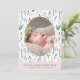 This cute girl photo birth announcement card features a white background with wildflower/floral pattern. The reverse side features your photos and message. Personalize it for your needs. You can find matching products at my store.