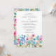 This beautiful and elegant wedding invitation features watercolor flowers in pink and blue. The text combines handwritten script and serif fonts for a stylish and modern look. This is perfect for a spring or summer rustic wedding.