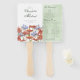 Rustic watercolor meadow wildflowers wedding program hand fan, featuring a summer wildflower meadow with red poppies, blue cornflowers, grass and twigs.