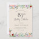 Adult Birthday Invitations | Rustic Beige floral Elegant 87th Invitation