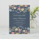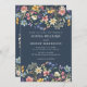 Wildflower Rustic Navy Blue Wedding QR Code Invitation