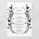 Wildflower Silhouette Wreath Wedding Black & White Menu