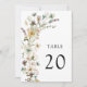 Wildflower Wedding Table Number. This elegant, whimsical wildflower wedding table number features beautiful hand-painted watercolor blush pink, dusty blue, and sage green pressed flowers with black text on a white background. Find matching items in the Wildflower Wedding Collection.