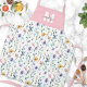 This personalized apron features a soft pink panel at the top with a white initial and dark grey name for an elegant, modern look. The bottom showcases a beautiful wildflower pattern in pink, purple, blue, green, and yellow, creating a fresh and cheerful springtime vibe. The apron wraps your favourite photos in a 7-image collage—perfect for family memories, vacations, pets, or everyday moments. Ideal for Mother’s Day, birthdays, or any special occasion for someone who loves to cook, bake, or grill.