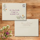 Add a touch of floral elegance to your wedding stationery with this personalized return address envelope. Featuring delicate watercolor wildflowers on both the front and back, this envelope pairs beautifully with garden, rustic, or country-inspired invitations. Customize with your names and return address to make your mailings feel as thoughtful as the celebration to come.