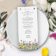 This summery yet elegant wedding menu features a modern and bright botanical design of colourful watercolor wildflowers with butterflies, bumble bees and ladybugs.