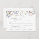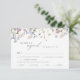 Pretty wildflower wedding RSVP card with meal choices that features floral graphics in soft blue, pink, lilac, yellow and green tones and a modern font. Pair with anything in the ELODIE collection for a cohesive look. This design has been featured on Wedding Sparrow.