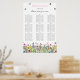 Pretty, summery and bohemian, this wedding day seating plan or chart features a bright botanical design of colourful watercolor wildflowers with butterflies, bumble bees and ladybugs.