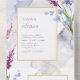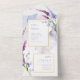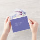 This elegant wedding collection uses a striking colour palette including periwinkle, plum and soft blues to create matching stationery and party supplies for your special day. Watercolor florals and sparkling paint strokes provide eye-catching backgrounds. Handwritten script paired with a classic serif font lend a modern touch. The wedding all-in one Invitation and RSVP card shown here provides a template to easily add your own event details. Search ID954 to see other pieces and colour choices for this set.