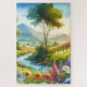 A vibrant springtime valley bursts with colour in this scenic watercolor landscape, where blooming wildflowers dance along a winding stream beneath tall trees and soft golden light. Rolling hills and distant mountains fade gently into the background, evoking the quiet joy of countryside mornings. Delicate floral hues and painterly textures bring a sense of harmony, warmth, and rustic charm, perfect for adding natural serenity to any space. AI generated artwork.