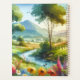 A vibrant springtime valley bursts with colour in this scenic watercolor landscape, where blooming wildflowers dance along a winding stream beneath tall trees and soft golden light. Rolling hills and distant mountains fade gently into the background, evoking the quiet joy of countryside mornings. Delicate floral hues and painterly textures bring a sense of harmony, warmth, and rustic charm, perfect for adding natural serenity to any space. AI generated artwork.
