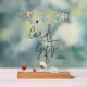Cards and Gifts clear acrylic sign features dainty wildflowers, perfect for your baby shower. CHANGE THE SIZE to fit your event and order with or without a wood stand. MATCHING items in our collection.