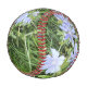 A Baseball with a Picture of Wildflowers and grass all over it.