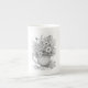 A charming botanical illustration of wildflowers in a vintage teacup with a tiny honey bee. This delicate ink drawing brings the peacefulness of a summer garden to your table.
