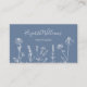 Professional business card featuring white wildflowers on a dusty blue background and a text in elegant handwritten font. Modern floral boho chic design with a qr code on the back. Perfect for florists, hair stylists, landscaping, event planners....